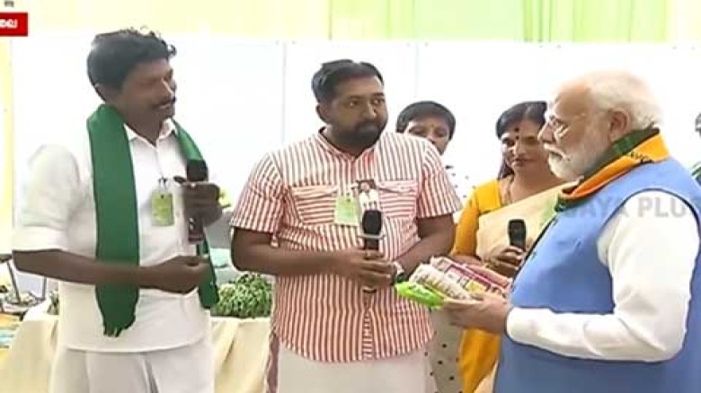 விளைப்பொருட்கள் குறித்து கேட்டறிந்தார் பிரதமர் மோடிவேளாண் கண்காட்சியி...