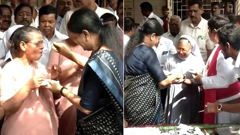 நேர்ச்சை திருத்தல மாதா ஆலய வளாகத்தில் உள்ள கருணை இல்லத்தில் கேக் வெட்டி க?...