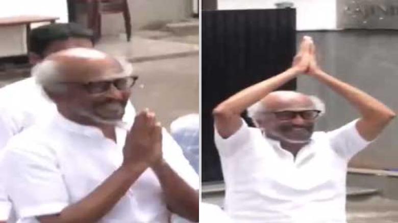 இல்லத்தின் முன் கூடியிருந்த ரசிகர்களுக்கு ரஜினிகாந்த் புத்தாண்டு வாழ்த்து...