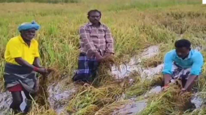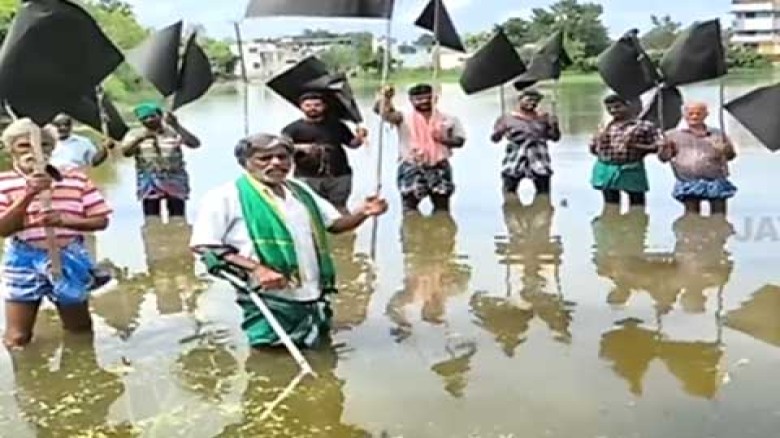 வயலில் இறங்கி கருப்புக்கொடியுடன் விவசாயிகள் ஆர்ப்பாட்டம்கும்பகோணத்தி?...